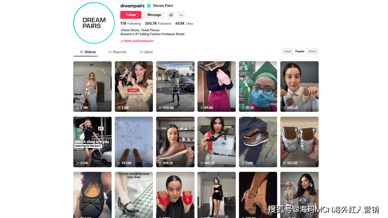 借助海外社媒的传播力,Dream Pairs持续为品牌注入新鲜感,并大力加码海外红人营销,尤其在年轻人居多的TikTok上玩得风生水起!